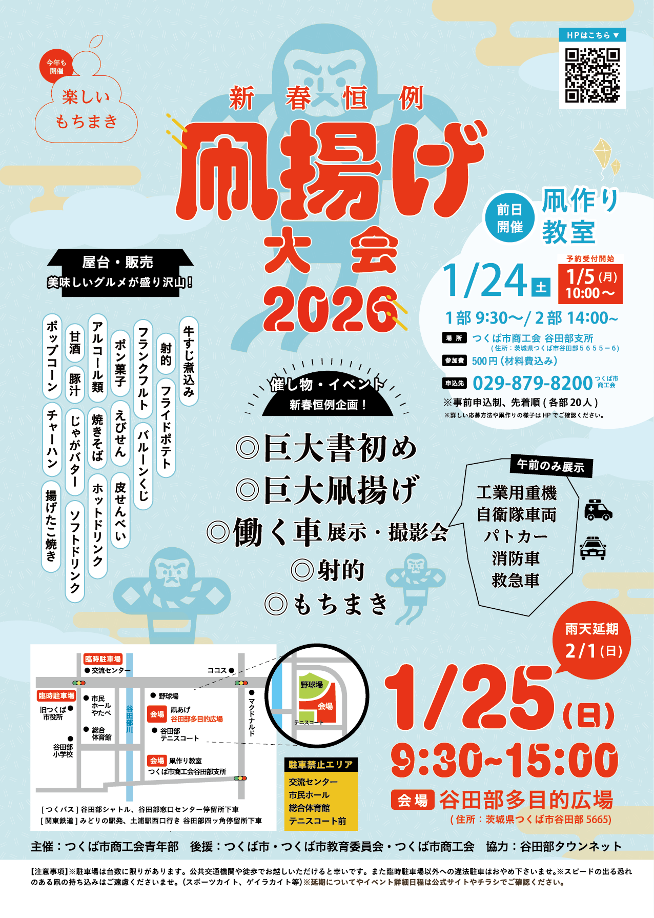 つくば市商工会 ℡029-879-8200(当日は、070-3962-5610) >>雨天延期の場合、公式HPInstagram(つくば市商工会青年部)!でお知らせいたします。